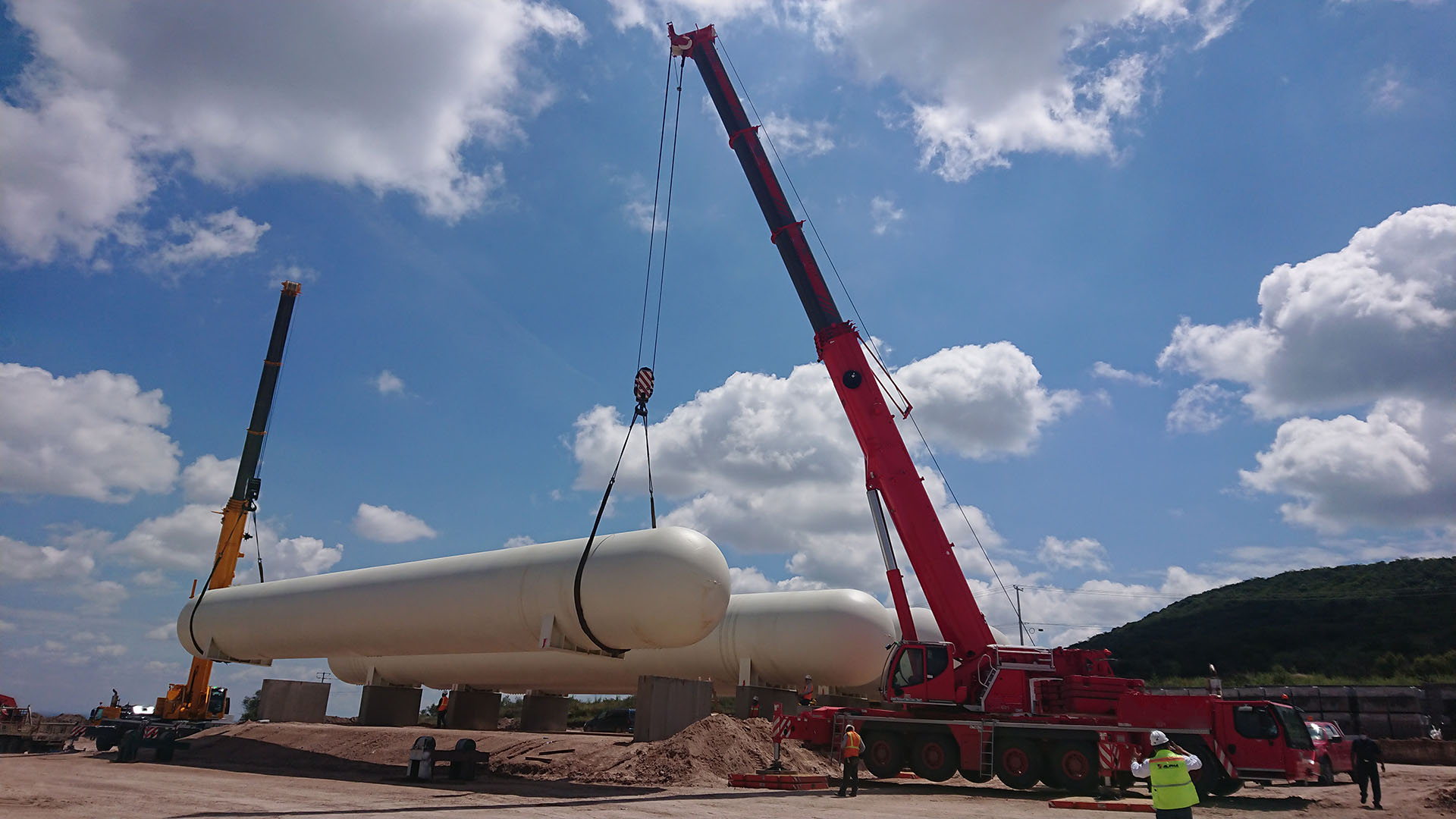 • Recepción y montaje en sus bases, de 2 tanques de almacenamiento de 250,000L