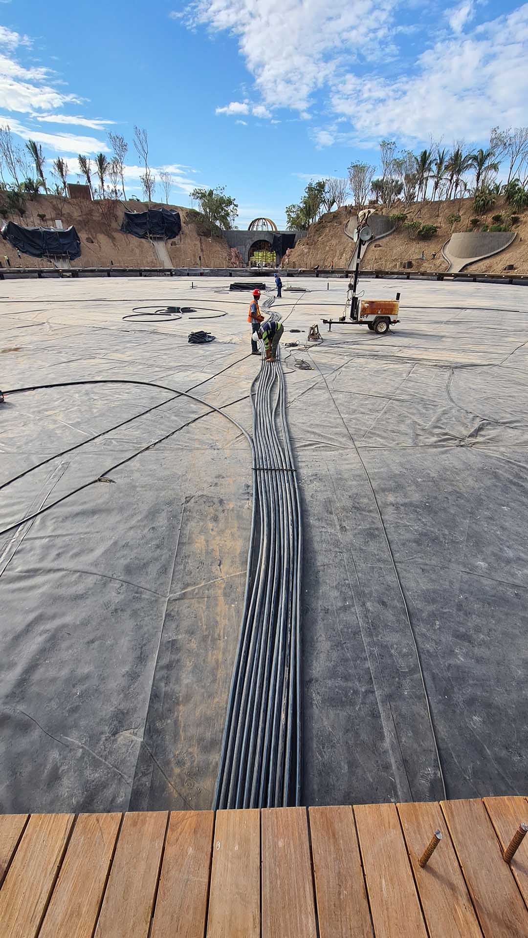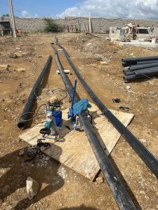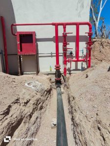 Las redes de infraestructura que llevan el agua contra incendios desde los equipos de bombeo hasta los hidrantes, monitores, risers, etc. son sin duda un conjunto de tuberías que no debe fallar por ningún motivo, es por eso que se utiliza recientemente HDPE, por su fiabilidad, es un material flexible, resistente y económico. La tubería que instalamos cuenta con lineas de color rojo para su fácil  identificación.